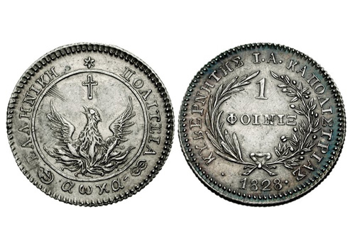 Στις 2 Φεβρουαρίου 1828 ιδρύεται στην Αίγινα η πρώτη ελληνική τράπεζα, η Εθνική Χρηματιστική Τράπεζα, σε μια προσπάθεια του Κυβερνήτη Καποδίστρια να αποκαταστήσει την πίστη στην ελληνική οικονομία. Σημαντική βοήθεια στην ίδρυσή της προσέφερε ο Ελβετός Φιλέλληνας Εϋνάδρος. Η επιτροπή της Τράπεζας θα εκτελούσε παράλληλα και τα καθήκοντα Υπουργείου Οικονομικών, ενώ επικεφαλής τέθηκε ο Γεώργιος Σταύρου. Το κεφάλαιό της προήλθε από ιδιωτικές καταθέσεις, καλώντας τους ευκατάστατους Έλληνες να γίνουν μέτοχοί της, δίνοντας πρώτα και ο ίδιος ο Καποδίστριας το παράδειγμα. Παράλληλα, θα καθιερωθεί ως εθνικό νόμισμα ο Φοίνικας.