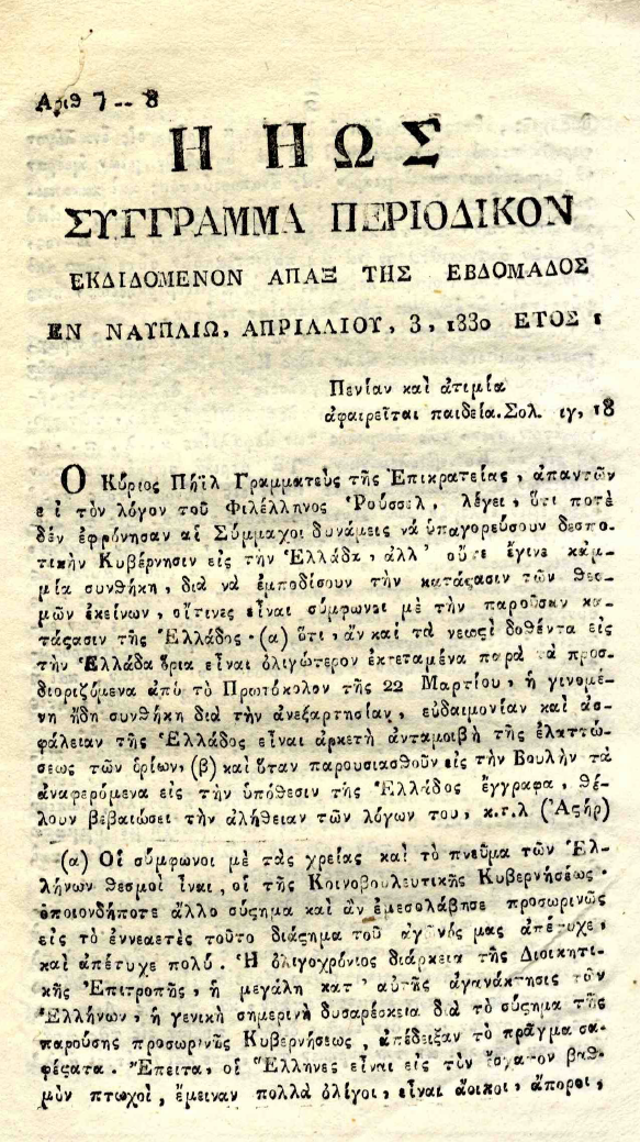 Χρόνος έκδοσης: 1 Νοεμβρίου 1829 έως 1 Φεβρουαρίου 1832