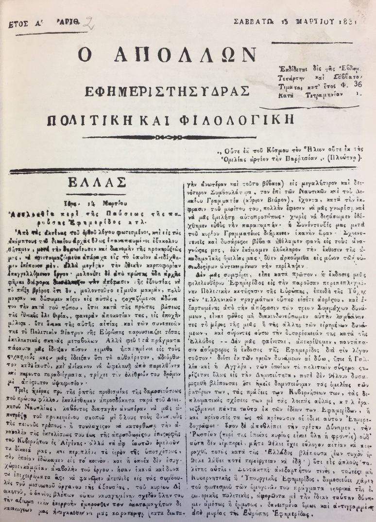 Χρόνος έκδοσης: 11 Μαρτίου έως 7 Οκτωβρίου 1831