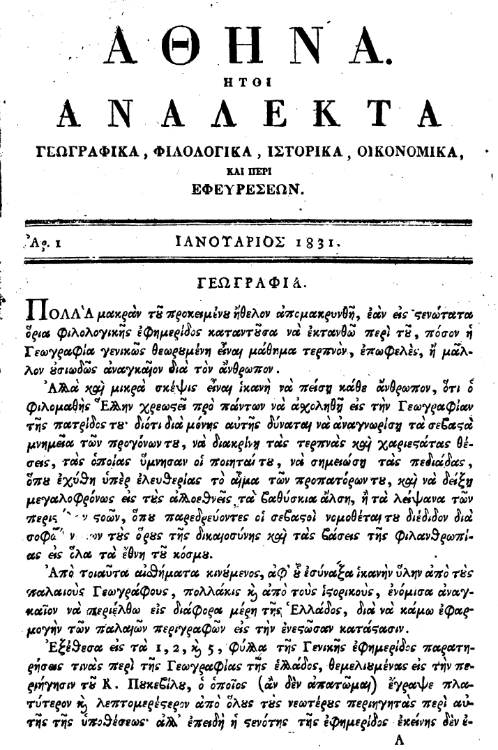 Χρόνος έκδοσης: Ιανουάριος έως Απρίλιος 1831